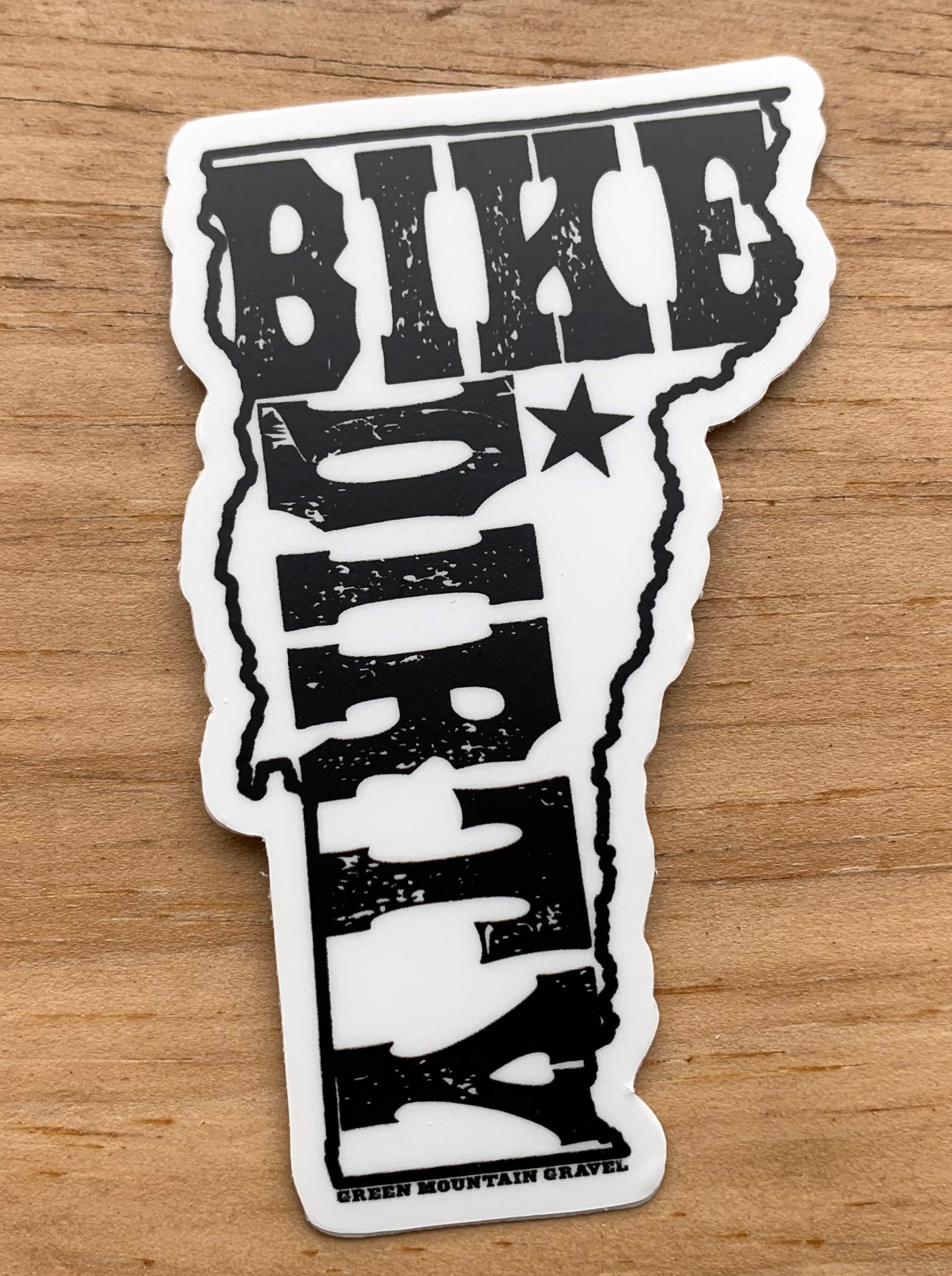 High quality vinyl die-cut sticker, measures 3″x approx. 1-3/4″.