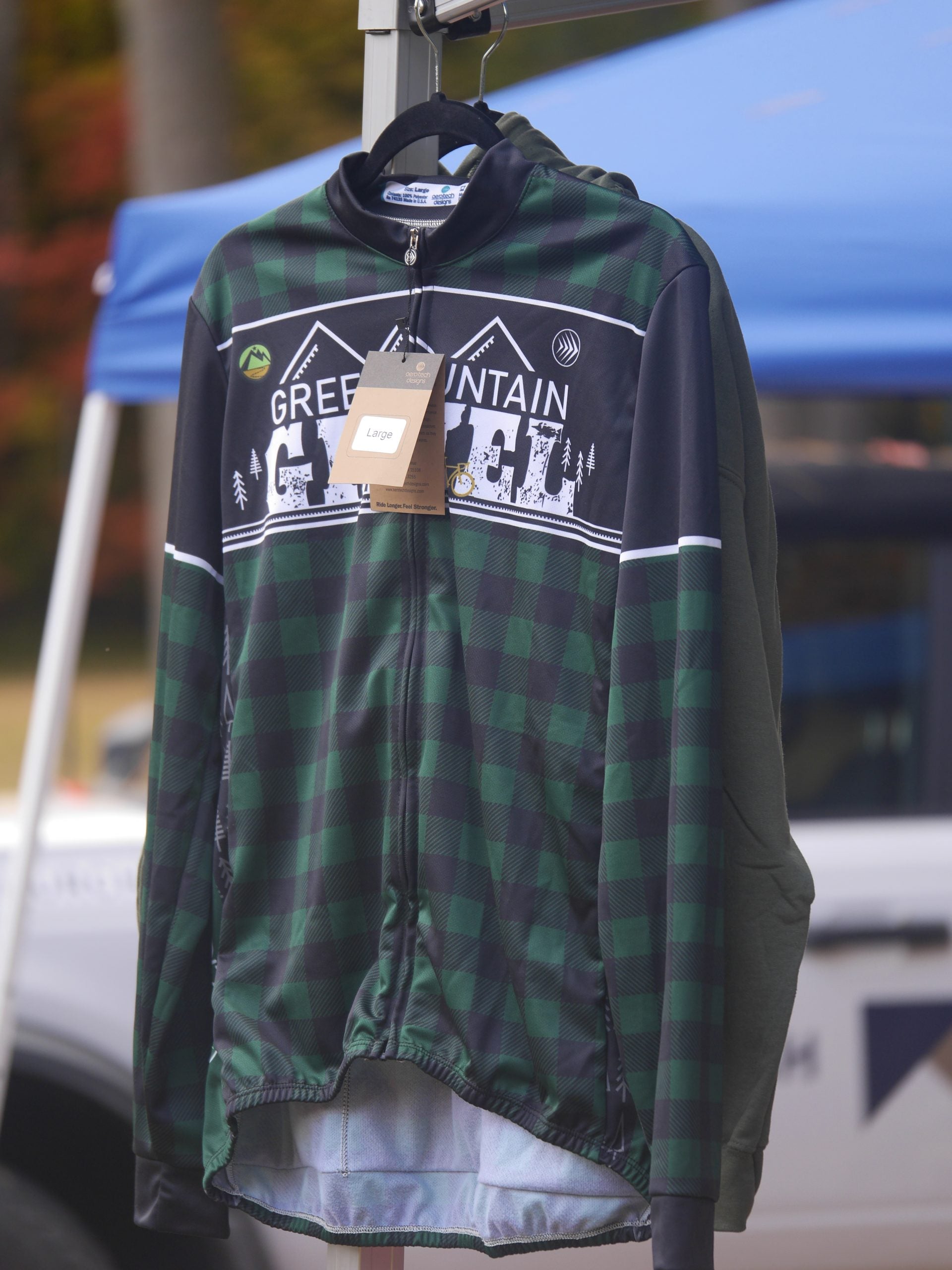 An exclusive design collaboration with Aero Tech Designs, the Graveljack is our signature cool weather cycling jersey. This long sleeve cycling jersey is made with 100% Polyester MicroFleece to keep you warm while wicking away moisture. Perfect for cycling through the woods and mountains! The back panel is lengthened to keep out the blustery winds around the backside and midriff. Raglan sleeves fit snug around the shoulders without impairing mobility. The sleeve cuffs stretch to conform to your wrist and fit perfectly into a pair of cycling gloves. The jersey has a full-length zipper with a large Aero Tech Designs pull tab that is easy to grab with one hand, even while wearing gloves. A reflective tab in the rear adds visibility for those long night rides in the woods. Three generously-sized rear pockets are designed for easy access and reinforced for long life. Need to carry a flask? A neck warmer or spare beanie? The keys to your cabin? It can even stretch to hold a small hatchet. Plenty of room for all your cycling and graveljack needs!