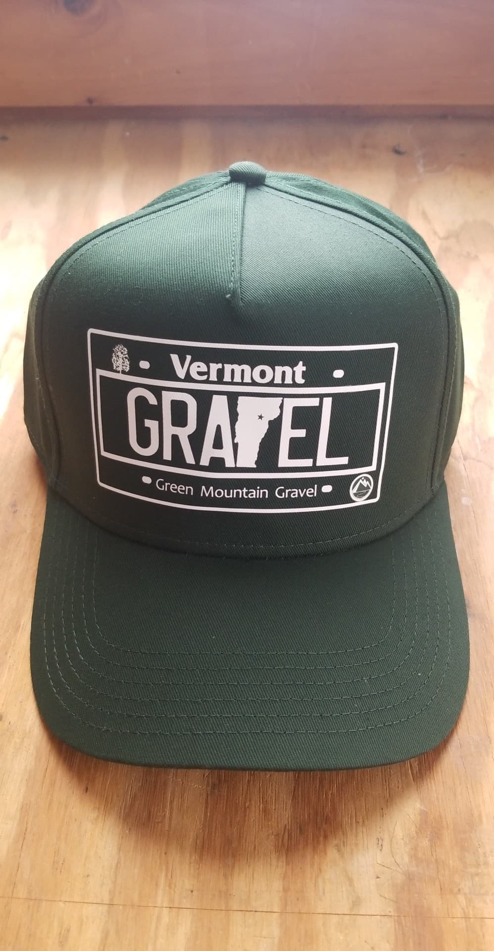 The iconic Vermont license plate design, remixed for gravel and emblazoned on a sweet hat.