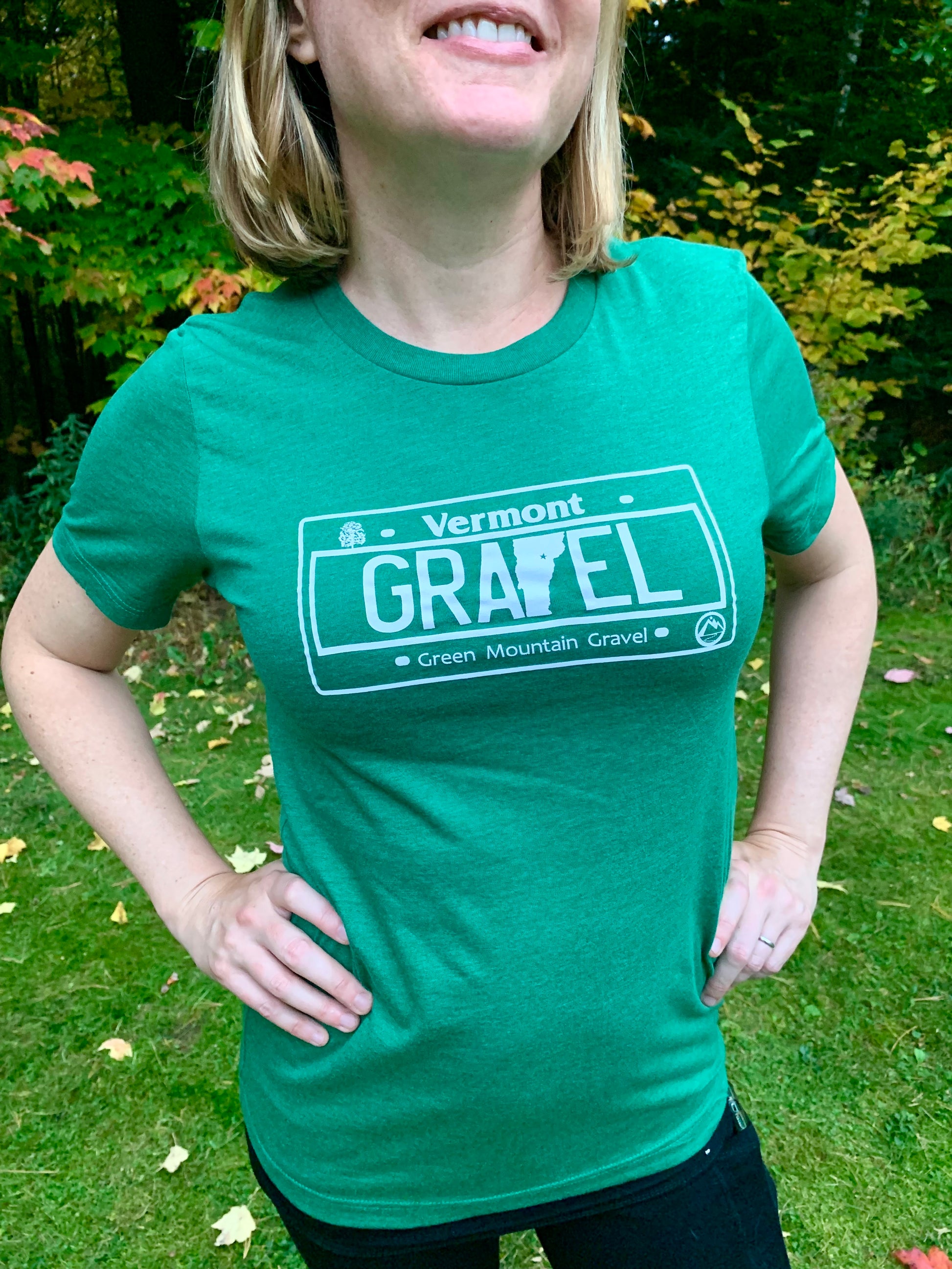 The iconic Vermont license plate goes gravel. One of our most popular sticker designs, now on a t-shirt!